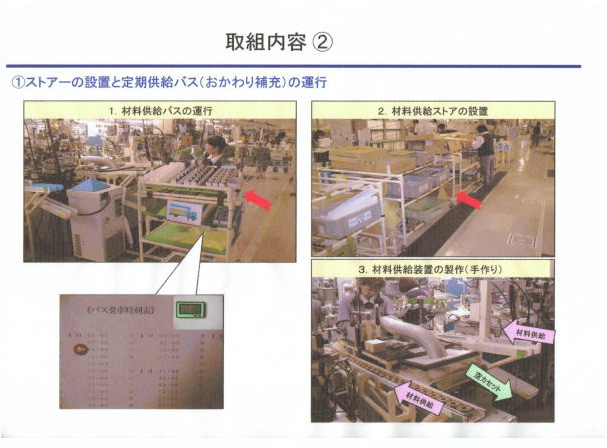 手法1:「床ペンキ作戦」レイアウトを考慮し、位置決めをしたら作業区、通路、休憩所、倉庫等用途に合わせてペンキで床を塗り分けるやり方。